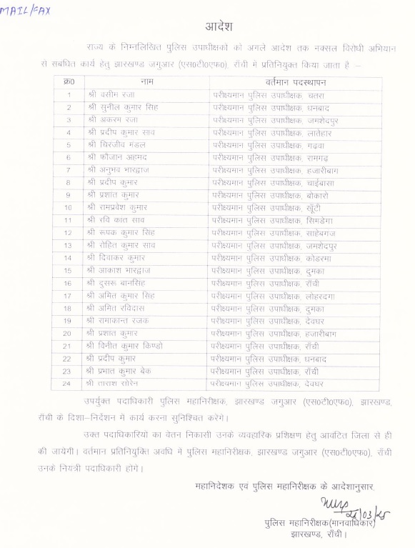 Home»जोहार ब्रेकिंग»नक्सल विरोधी अभियान में लगाये गये 29 DSP… देखें पूरी लिस्ट