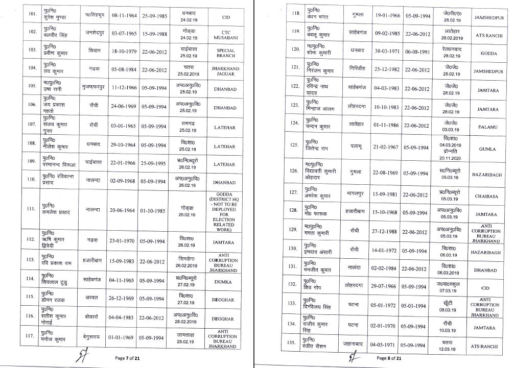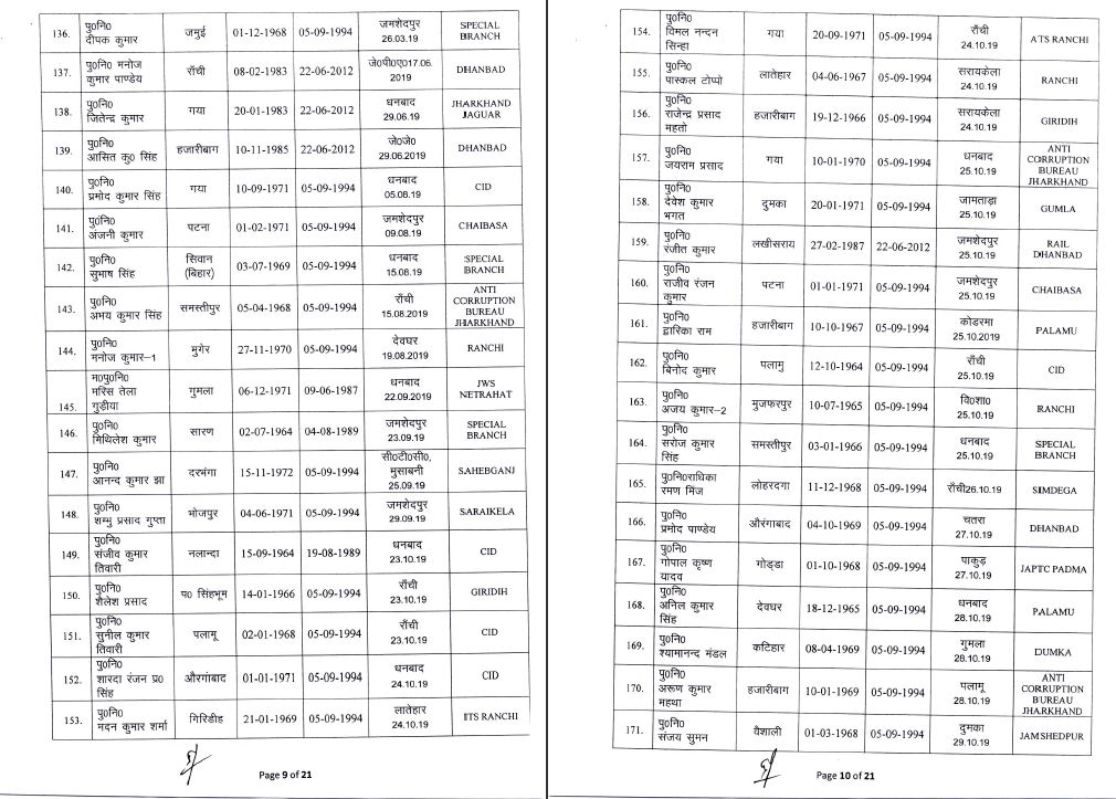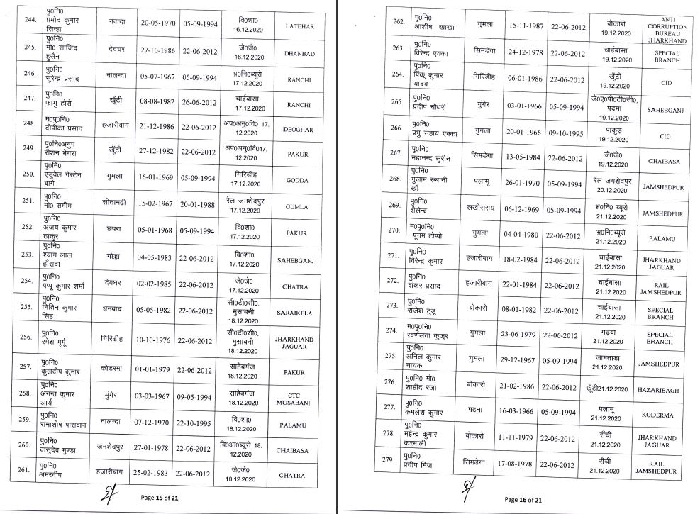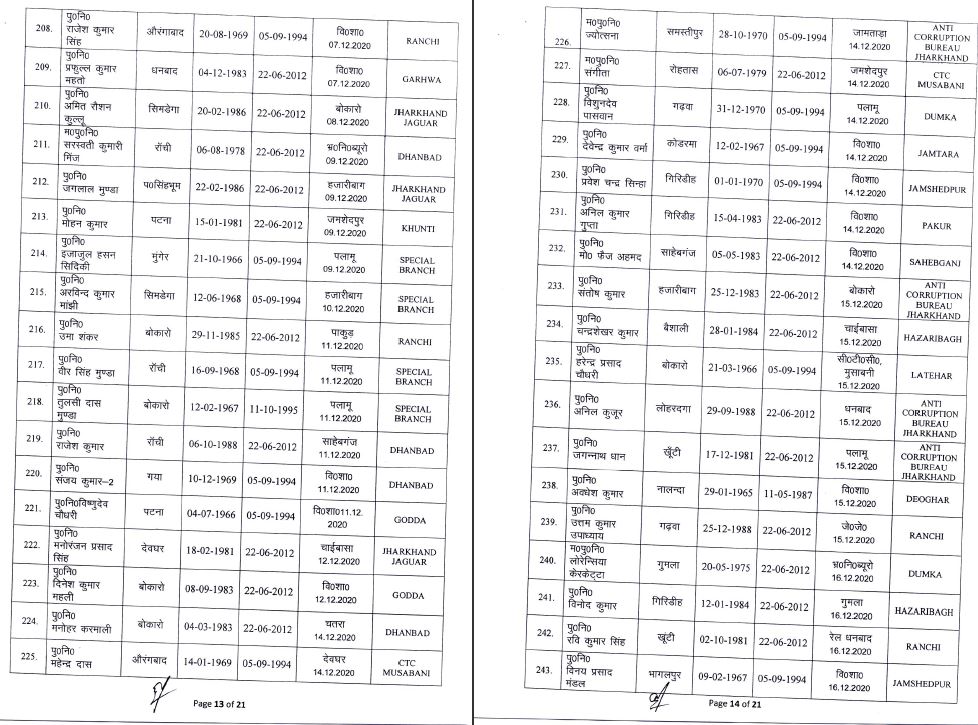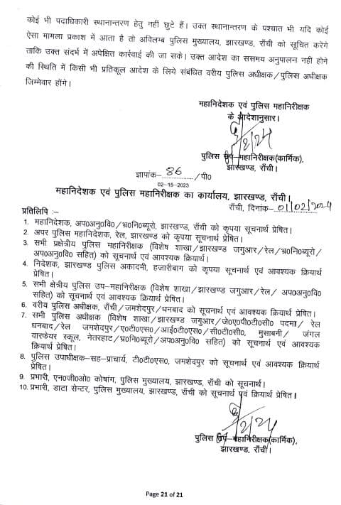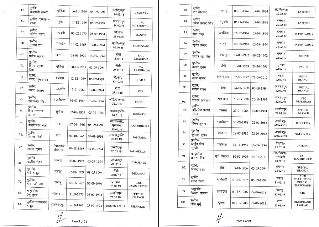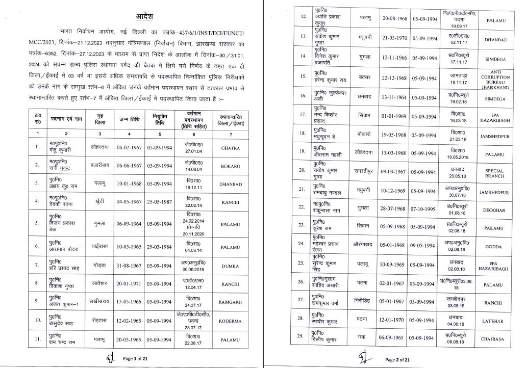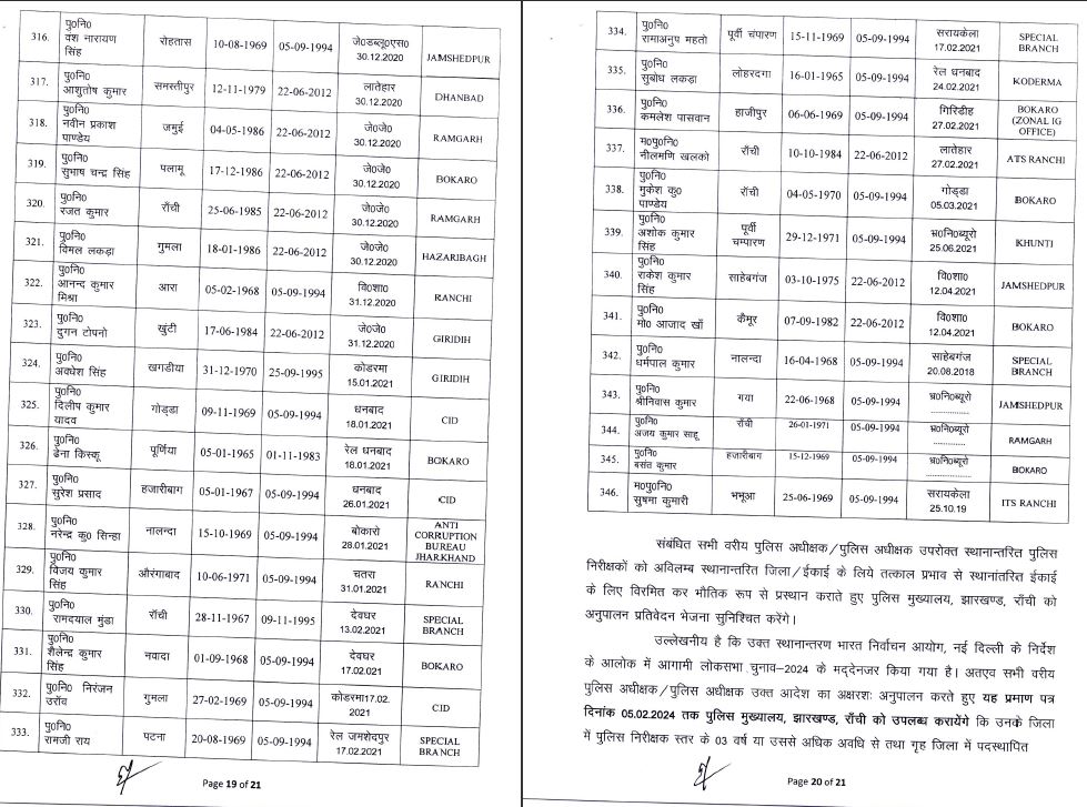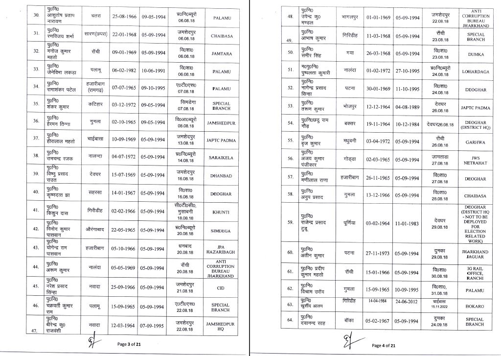 inspector jharkhand johar live news Notification police headquarters Transfer अधिसूचना इंस्पेक्टर जोहार लाइव न्यूज़ झारखंड तबादला पुलिस मुख्यालय