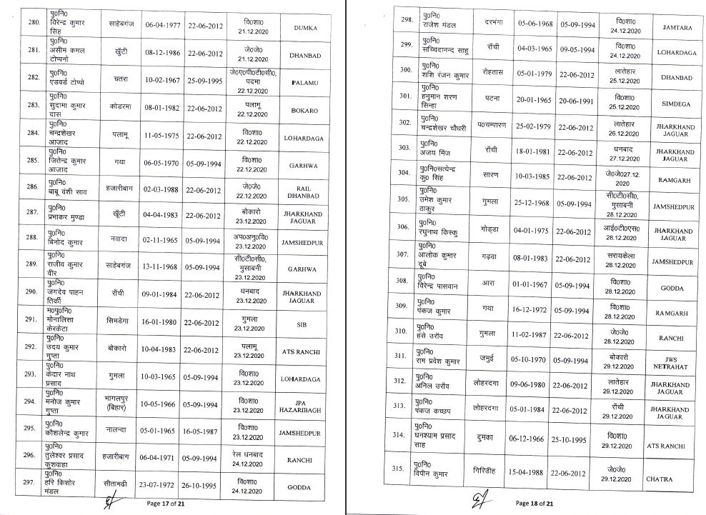 Transfer of two officials of Jharkhand Administrative Service, transfer of one officer postponed