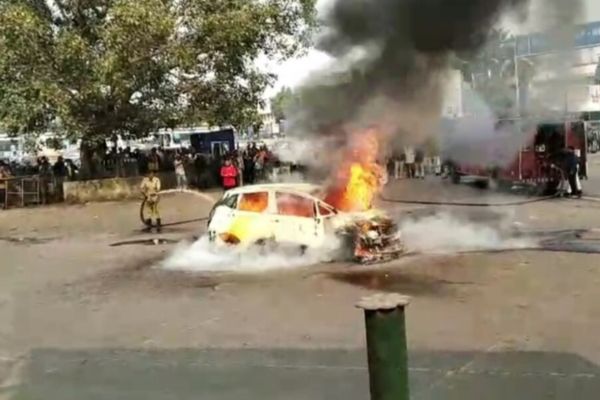 टाटानगर स्टेशन के बाहर कार में लगी आ’ग, फिर…