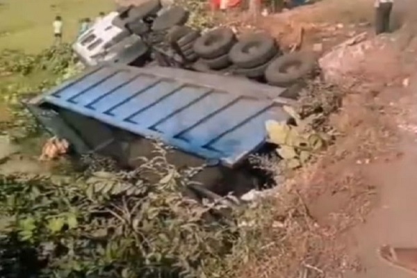 जानकारी के अनुसार, हाईवा तेज रफ्तार में पाकुड़ की ओर आ रहा था, तभी अचानक पुल की रेलिंग टूट गई और वाहन नीचे जा गिरा।