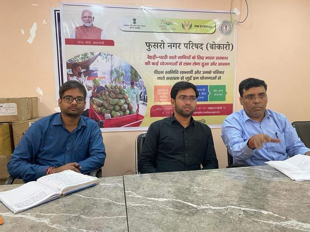 सिटी मिशन मैनेजर सुजीत त्रिवेदी ने कहा कि फुसरो नगर परिषद के सभी स्ट्रीट वेंडर लाभुको का प्रोफाइलिंग किया जाएगा. स्वनिधि से समृद्धि योजना अन्तर्गत सामाजिक आर्थिक प्रोफाइलिंग किया जाएगा. शिविर के माध्यम से सरकार की महत्वाकांक्षी योजना प्रधानमंत्री जनधन योजना, प्रधानमंत्री जीवन ज्योति योजना, प्रधानमंत्री सुरक्षा बीमा योजना, भवन और अन्य श्रमिक योजना में निबंधन, प्रधानमंत्री श्रम मानधन योजना, वन नेशन-वन राशन कार्ड, जननी सुरक्षा योजना, मातृ वंदन योजना के साथ योग्य लाभुको को लिंक किया जाना हैं. ताकि उक्त महत्वाकांक्षी योजना का लाभ स्ट्रीट वैंडर्स को मिल सके. ईओ स्पष्ट किया कि अहर्ता प्राप्त लाभुको को प्रोफाइलिंग के साथ साथ विभिन्न सरकारी योजनाओं से संबंधित सरकारी विभाग के द्वारा लिंक कराना सुनिश्चित करेंगे. शिविर में सिटी मैनेजर कुमार निशांत, समीर कुमार, तुलसी रविदास, कम्युनिटी ऑर्गनाइजर तपन कुमार अड्डी, दिव्यांश मिश्रा, सीआरपी रेखा देवी, चिंता देवी, बेबी देवी, लक्ष्मी देवी, रीता देवी, राजीव रंजन कुमार आदि शामिल हुए.