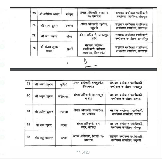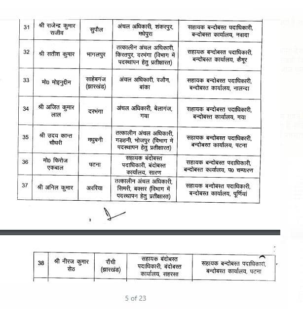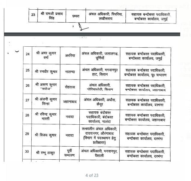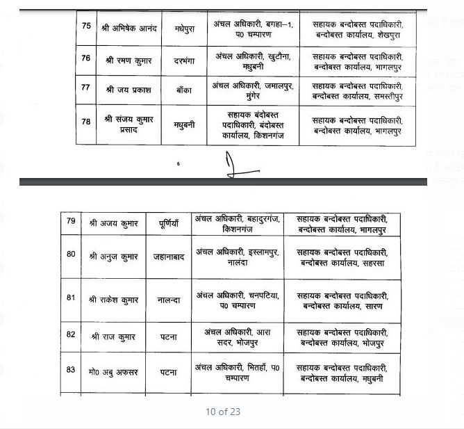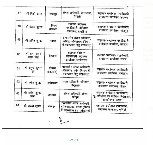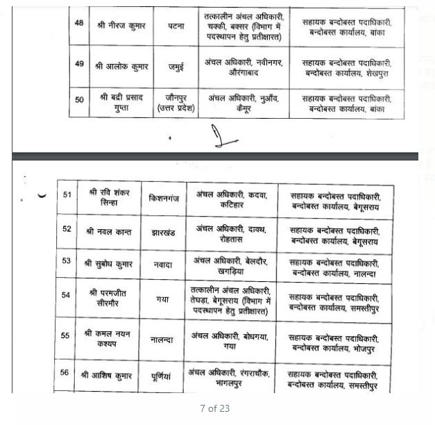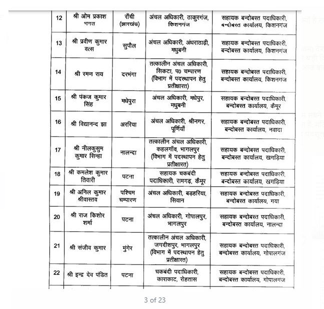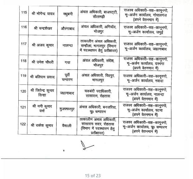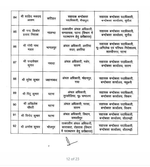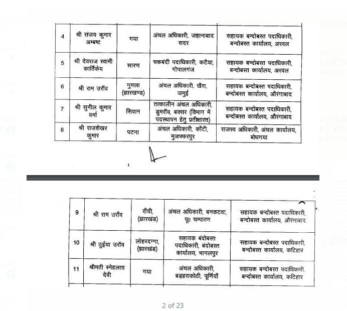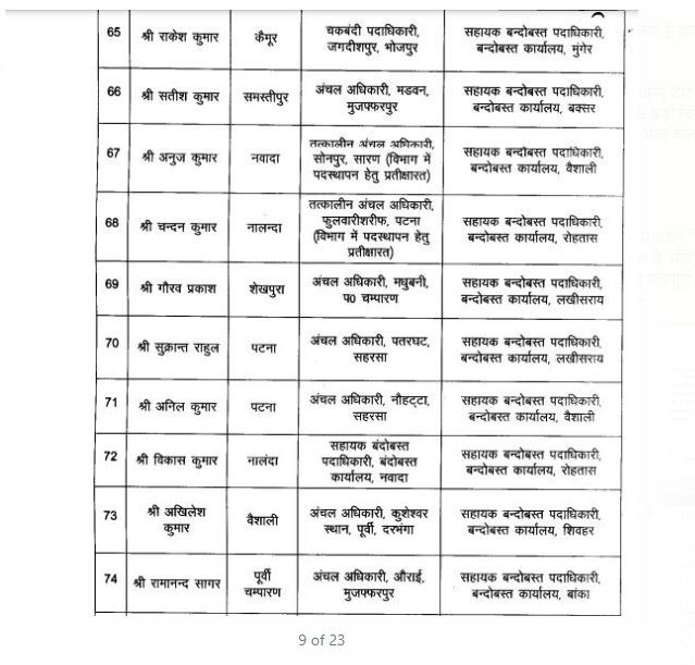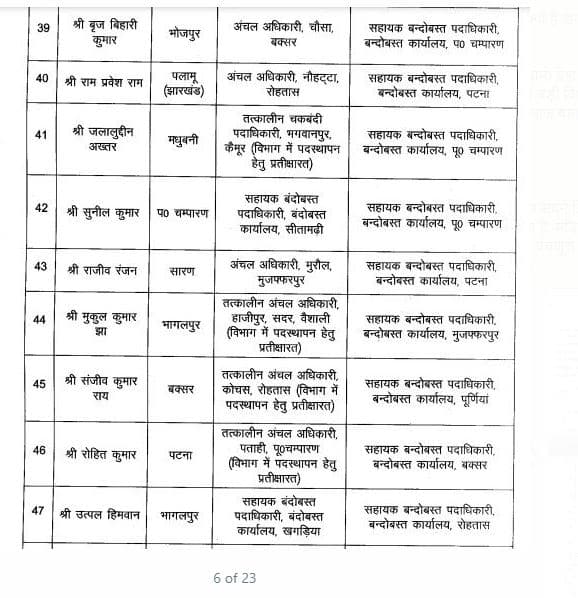 पटना : बिहार में तबादलों का दौरा जारी है. IAS-IPS, DSP-SDPO के तबादले के बाद अब भूमि एवं राजस्व विभाग में 198 अंचलाधिकारी और समकक्ष अधिकारियों का तबादला कर दिया गया. इसको लेकर सामान्य प्रशासन विभाग की ओर से अधिसूचना जारी कर दी गई.
