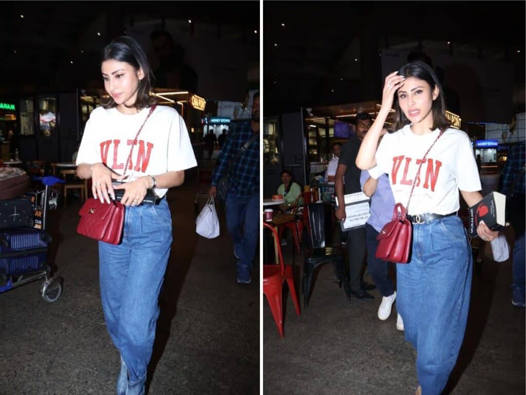 एयरपोर्ट पर मौनी व्हाइट टी-शर्ट और ब्लू बैगी जींस पहने कैजुअल लुक में नजर आईं. मौनी ने मैरून कलर का बैग कैरी किया हुआ था. उसके एक हाथ में किताब थी. मौनी ने लाइट मेकअप से लुक को पूरा किया गया था.