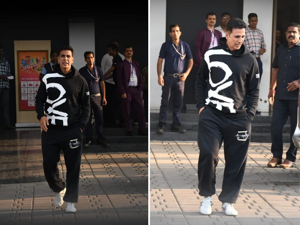 कलिना एयरपोर्ट पर अक्षय कुमार के साथ मानुषी छिल्लर, अलाया एफ और टाइगर श्रॉफ भी नजर आए. अक्षय ने मैचिंग ट्राउजर के साथ ब्लैक कलर की हुडी पहनी हुई थी. अक्षय की ब्लैक हुडी पर सफेद रंग से बड़े-बड़े अक्षरों में लव लिखा हुआ था. अक्षय और टाइगर ने साथ में पैपराजी को पोज भी दिए.