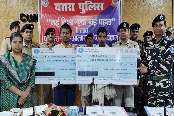 Chatra : चतरा पुलिस ने नक्सल उन्मूलन अभियान में एक बड़ी सफलता हासिल की है। शुक्रवार को नक्सली संगठन TSPC के एरिया कमांडर कुणाल उर्फ कुलदीप और रोहिणी गंझू ने पुलिस के सामने आत्मसमर्पण कर दिया। यह नक्सली चतरा और पलामू क्षेत्र में लंबे समय से सक्रिय थे और उनके खिलाफ दर्जनों मामले दर्ज हैं। जानकारी के अनुसार, नक्सली कुणाल के खिलाफ चतरा व पलामू क्षेत्र में 16 मामले दर्ज हैं, जबकि रोहिणी के खिलाफ 10 से अधिक मामले दर्ज हैं। दोनों नक्सलियों ने समाहरणालय स्थित सभाकक्ष में बोकारो प्रक्षेत्र के आईजी सुनील भास्कर के सामने हथियार डालकर आत्मसमर्पण किया।