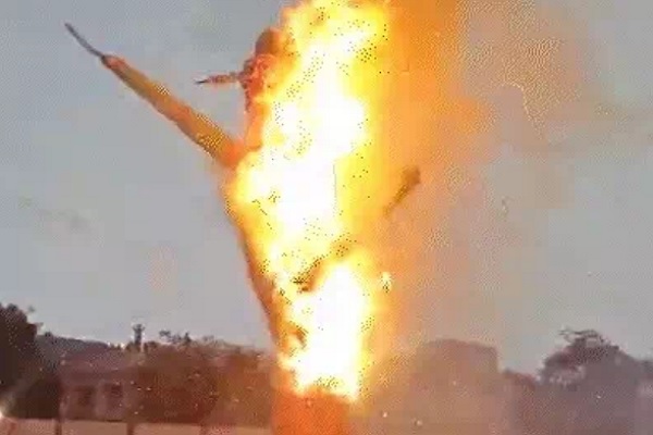 Patna : देशभर की तरह बिहार में भी दशहरा धूमधाम से मनाया जा रहा है। राज्य के कई जिलों में तेज बारिश हो रही है, लेकिन इसके बावजूद रावण दहन की परंपरा जारी रही। पटना के गांधी मैदान में इस बार 80 फीट ऊंचा रावण बनाया गया था। मुख्यमंत्री नीतीश कुमार ने इस विशाल रावण का वध किया। इस अवसर पर राज्यपाल आरिफ मोहम्मद खान भी मौजूद रहे। बारिश के कारण मुख्यमंत्री के पहुंचने से पहले ही रावण का सिर टूट गया था, लेकिन कार्यक्रम फिर भी जारी रहा।
