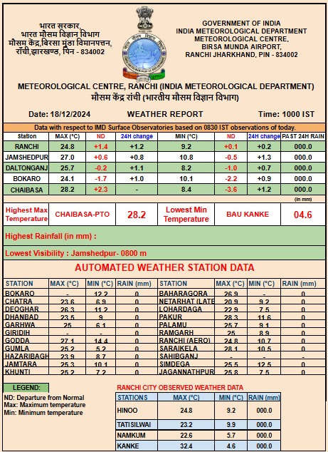 alert Bokaro chill cold Cold Wave cold wave alert Dhanbad Garhwa Godda gumla jharkhand Jharkhand Latest News Jharkhand news Jharkhand Today News Jharkhand Update News Johar Live Kanke Khunti latehar maximum temperature minimum temperature palamu rain ranchi Ranchi Latest News ranchi news ranchi today news Ranchi Update News Ranchi weather Today News weather department weather forecast Yellow Alert अधिकतम तापमान अलर्ट कांके खूंटी गढ़वा गुमला गोड्डा जोहार लाइव झारखंड झारखंड अपडेट न्यूज झारखंड टूडे न्यूज झारखंड न्यूज झारखंड लेटेस्ट न्यूज टूडे न्यूज ठंड ठिठुरन धनबाद न्यूनतम तापमान पलामू बारिश बोकारो मौसम पूर्वानुमान मौसम विभाग येलो अलर्ट रांची रांची अपडेट न्यूज रांची टूडे न्यूज रांची न्यूज रांची मौसम रांची लेटेस्ट न्यूज लातेहार शीतलहर शीतलहर अलर्ट