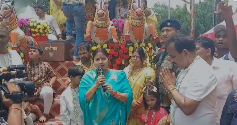 धनबाद: भगवान जगन्नाथ की रथ यात्रा के पावन अवसर पर धनबाद इस्कॉन द्वारा दुर्गा मंदिर स्टील गेट धनबाद के समीप विशाल रथ यात्रा निकाली गई. जिसमें भाजपा प्रदेश कार्यसमिति सदस्य रागिनी सिंह शामिल हुई. भगवान जगन्नाथ, भाई बलभद्र और बहन सुभद्रा की पूजा अर्चना कर परिवार व समस्त कोयलांचल वासियों के सुख समृद्धि व खुशहाली की कामना की. वहीं भगवान का रथ अपने हाथों खींचकर आशीर्वाद प्राप्त किया. रागिनी सिंह ने कहा कि प्रभु की लीला अपरम्पार है. जिन भक्तों को भगवान जगन्नाथ के दर्शन नहीं हो पाते उनके लिए रथयात्रा के दिन प्रभु अपने भाई-बहन के साथ अपने गर्भगृह से बाहर निकलकर नगर भ्रमण करते हुए दर्शन देते है. आज के दिन रथ यात्रा में शामिल होकर भगवान के दर्शन कर लेने मात्र से यज्ञ करने के बराबर फल प्राप्त होता है. मैं प्रभु से प्रार्थना करती हूं कि वे अपने सभी भक्तों पर यूं ही अपनी कृपा बनाए रखे. मौके पर हजारों की संख्या में श्रद्धालु गण मौजूद रहे.