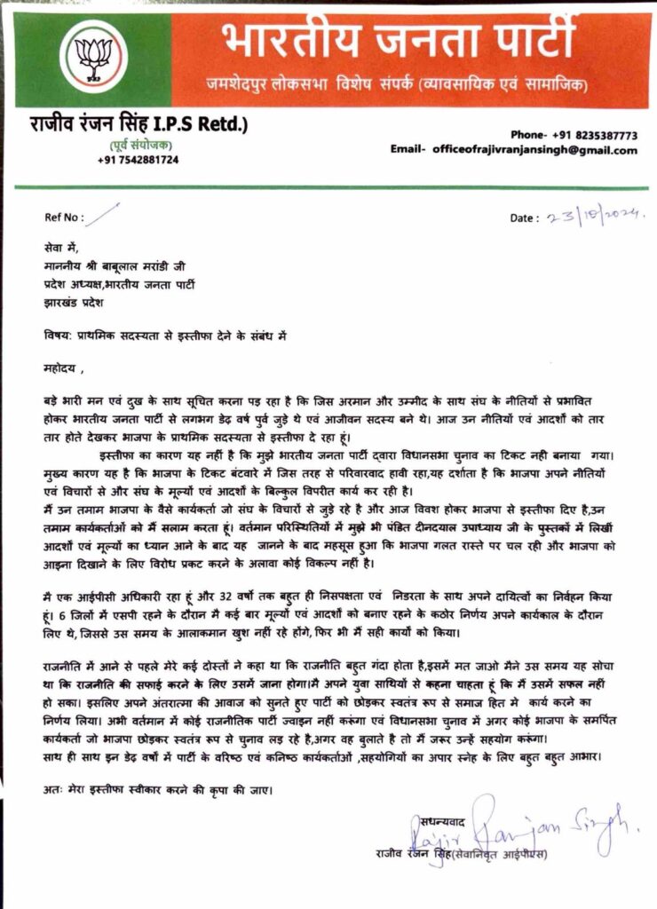 पूर्व आईपीएस राजीव रंजन सिंह ने भाजपा से दिया इस्तीफा