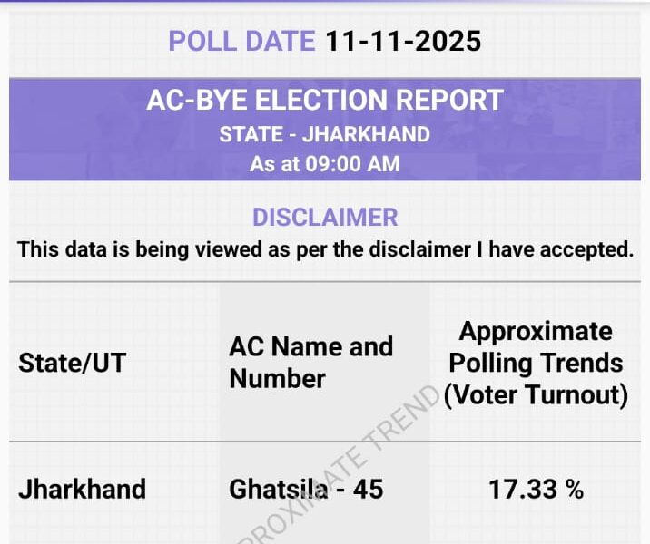 घाटशिला उपचुनाव : ग्रामीण इलाकों में सुबह से मतदान के लिए दिखी भीड़ सुबह 9 बजे तक 17.33 प्रतिशत मतदान