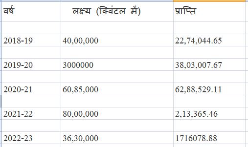 वर्षवार धान अधिप्राप्ति के आंकड़े