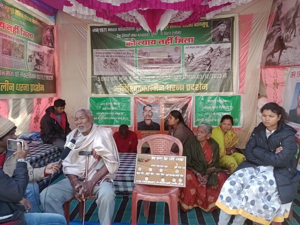 इस आंदोलन के बीच में एक ऐसा भी जो वर्ष 1971 के भारत-पाक की लड़ाई में शामिल ‘दि बिहार बटालियन’ का सैनिक पोदका बलमुचू व उसका परिजन भी राजभवन के समक्ष धरना दे रहे हैं. सैनिक पोदना बलमुचू व उनके परिजन 3 दिसंबर से धरना दे रहे हैं. पिछले 13 दिनों से राजभवन के समक्ष धरना दे रहे हैं.