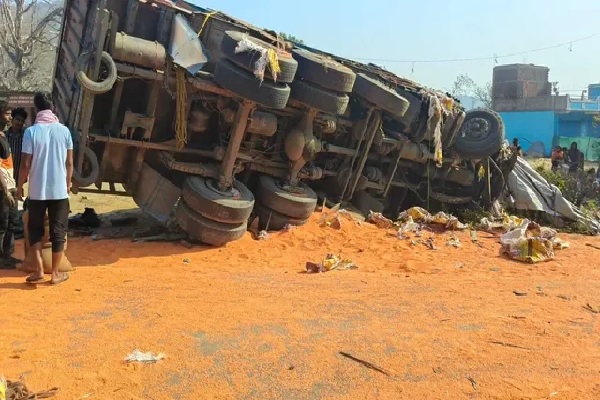 टक्कर के बाद एक ट्रक में लदी दाल सड़क पर बिखर गई। देखते ही देखते पूरी सड़क दाल से पट गई। दूर से ही यह नजारा साफ दिख रहा था, मानो सड़क पर अनाज का ढेर लग गया हो।
