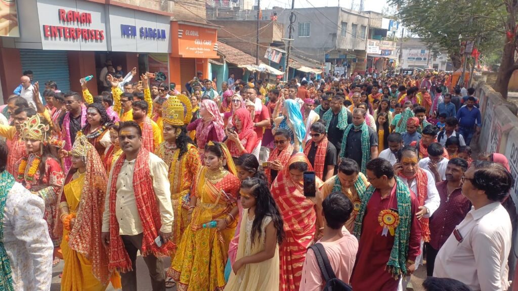 जामताड़ा : सात दिवसीय श्रीमद् भागवत कथा को लेकर गुरुवार को भव्य कलश शोभायात्रा निकाली गई. दुमका रोड शिव मंदिर प्रांगण से आरंभ होकर यह कलश शोभायात्रा मुख्य बाजार होते हुए गांधी मैदान पहुंचकर संपन्न हुआ.