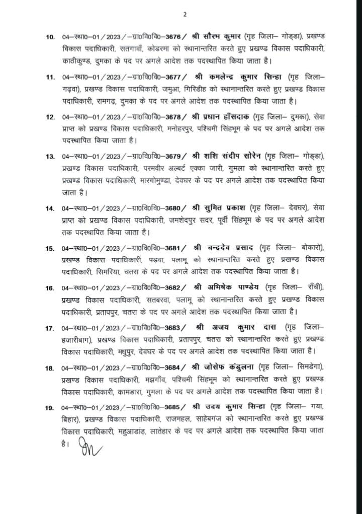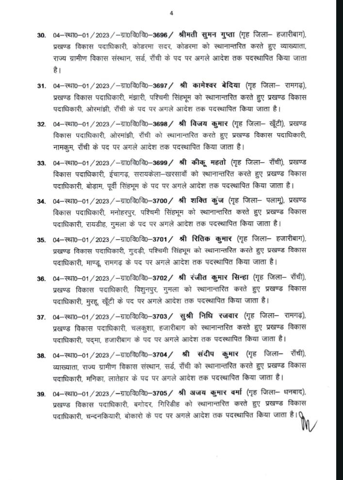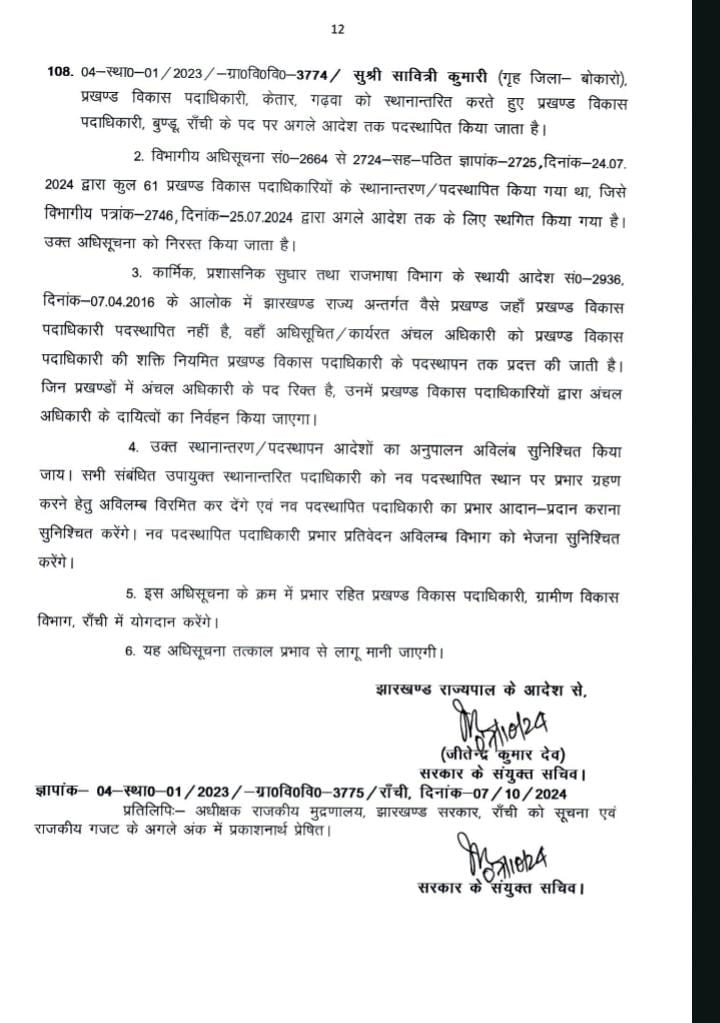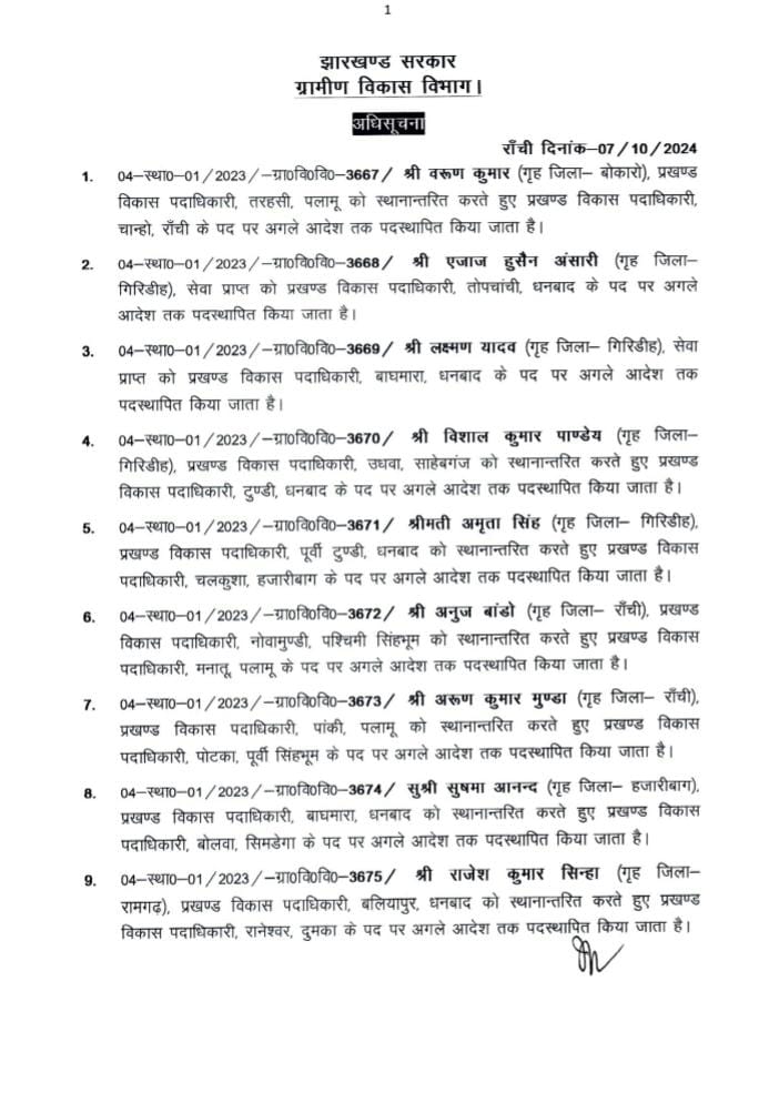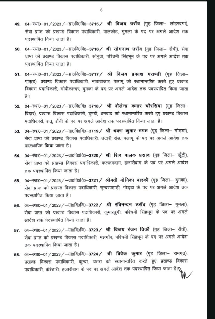 Share Facebook Twitter Telegram WhatsApp Email Copy Link रांची: झारखंड सरकार ने 108 बीडीओ का तबादला कर दिया है. जिसकी अधिसूचना जारी कर दी गई है. झारखंड तबादला बीडीओ सरकार