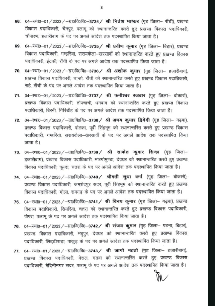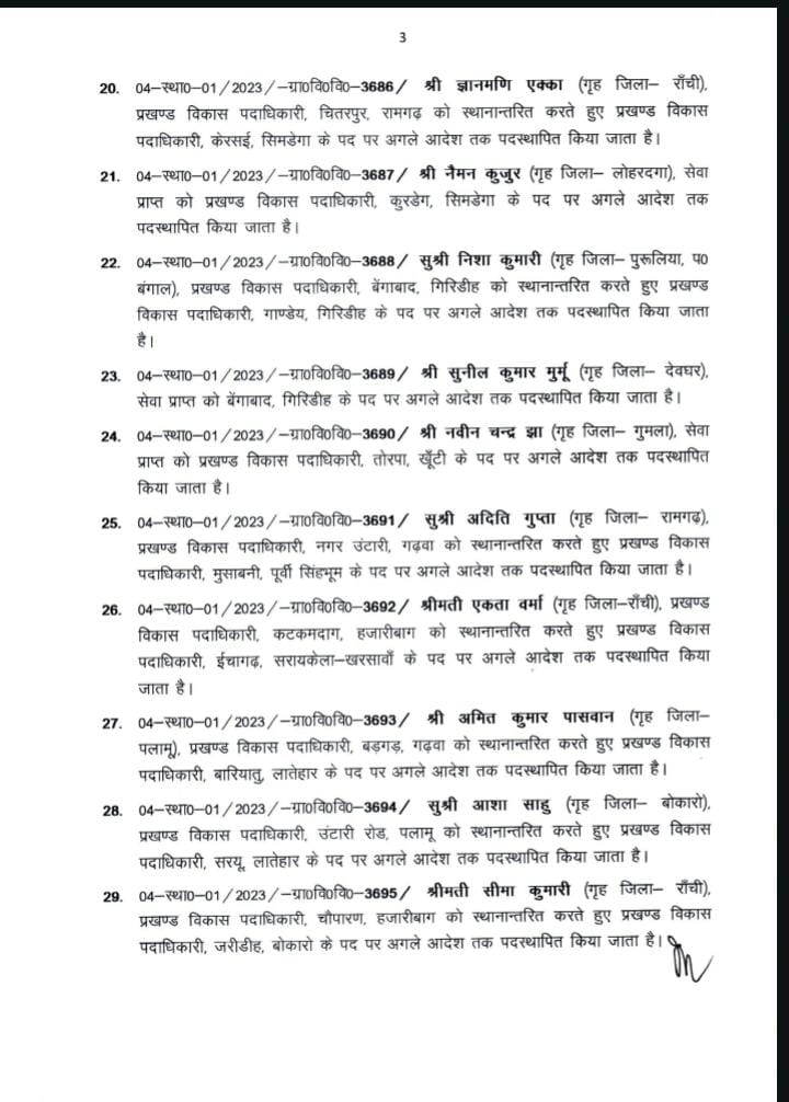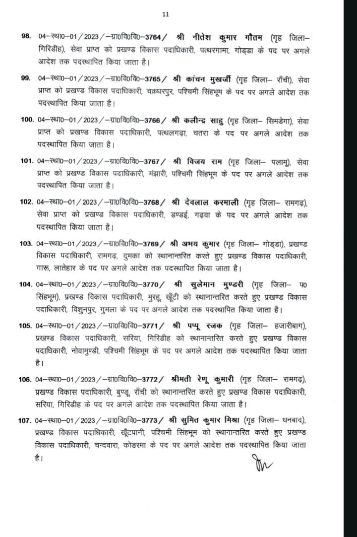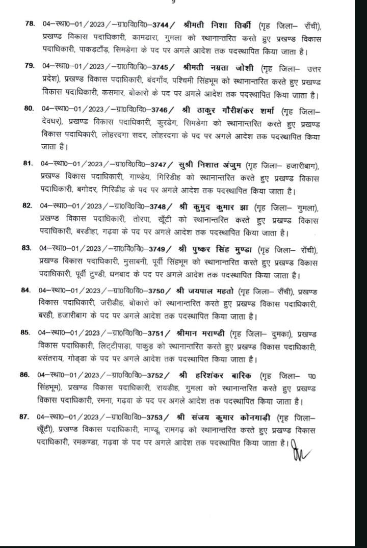 Share Facebook Twitter Telegram WhatsApp Email Copy Link रांची: झारखंड सरकार ने 108 बीडीओ का तबादला कर दिया है. जिसकी अधिसूचना जारी कर दी गई है. झारखंड तबादला बीडीओ सरकार