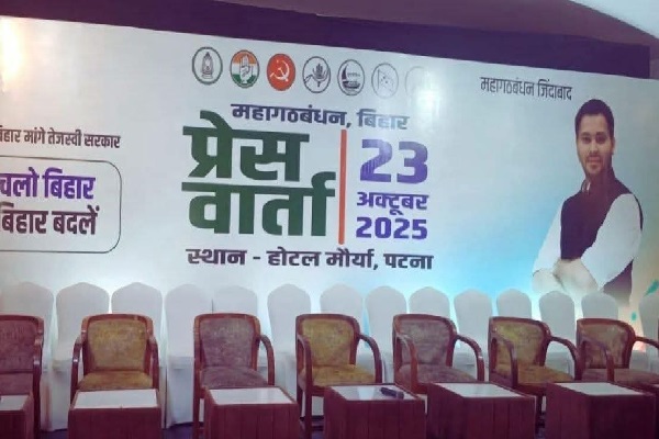 Patna :  पटना के होटल मौर्या में आज बिहार महागठबंधन की ओर से एक प्रेसवार्ता आयोजिती की गयी थी। इस प्रेसवार्ता में महागठबंधन ने सीएम और डिप्टी सीएम फेस का ऐलान किया। सीएम के लिए तेजस्वी यादव को चुना गया। वहीं. डिप्टी सीएम के लिए मुकेश सहनी के नाम पर मुहर लगाई गयी। प्रेस कॉन्फ्रेंस में सबकुछ तो ठीक रहा, पर चौंकाने वाली एक बात दिखी। यहां स्टेज पर लगाये गये महागठबंधन के पोस्टर से JMM यानी झारखंड मुक्ति मोर्चा नामो-निशान नहीं था। पोस्टर से लोगो तक गायब था।