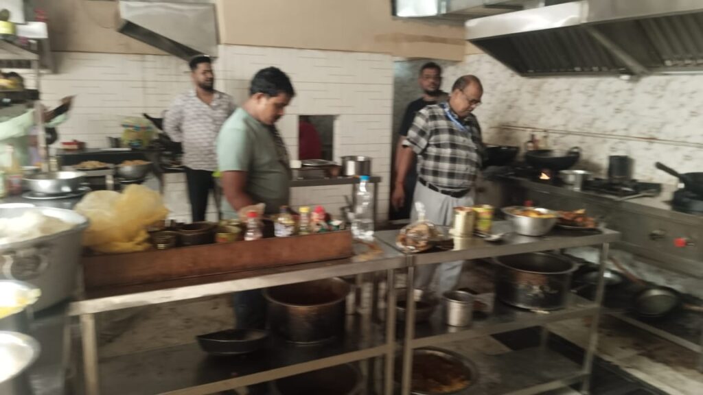 Jamshedpur : जमशेदपुर के खाद्य निरीक्षक संजय कुमार ने मंगलवार दोपहर करीब 12 बजे हाता स्थित अभिनंदन होटल का औचक निरीक्षण किया। जांच के दौरान होटल में कई गंभीर अनियमितताएं पाई गईं।