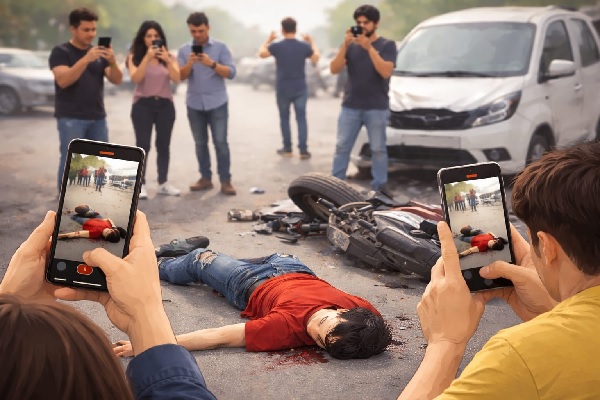हादसे के बाद वहाँ लोगों का हुजूम जमा हो गया, लेकिन किसी ने उस तड़पते हुए युवक को अस्पताल ले जाने की जहमत नहीं उठाई। लोग तमाशबीन बने रहे और मोबाइल निकालकर घटना का वीडियो और रील बनाने में व्यस्त हो गए। ऐसा लग रहा था कि किसी की जान से ज्यादा उनके लिए ‘सोशल मीडिया पर लाइक्स’ जरूरी थे।