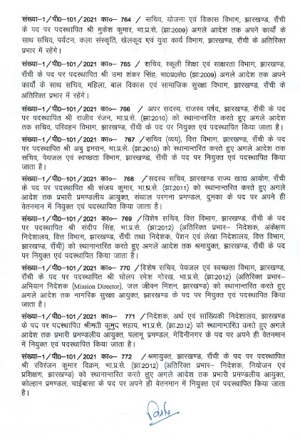 Ranchi : झारखंड में कई IAS अधिकारियों का तबादला किया गया है। संबंधित अधिसूचना जारी कर दी गयी है। किस अधिकारी को कहां भेजा गया है… देखें पूरी लिस्ट…