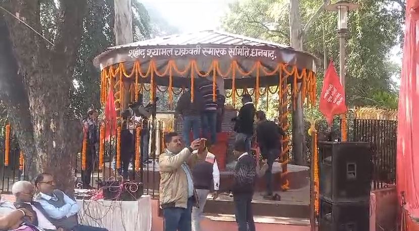 धनबाद : शहीद श्यामल चक्रवती समिति एवं मार्क्सवादी युवा मोर्चा के संयुक्त तत्वावधान में बुधवार को आईआईटी आईएसएम गेट नंबर 1 के समीप बने प्रतिमा पर पुष्प अर्पित कर शहिद श्यामल चक्रवर्ती की 33वीं पुण्यतिथि मनाई गई. श्यामल चक्रवर्ती के पुण्यतिथि पर निरसा पूर्व विधायक अरुप चटर्जी के साथ-साथ सीपीएम के सभी सदस्य का कार्यकर्ता उपस्थित रहे.