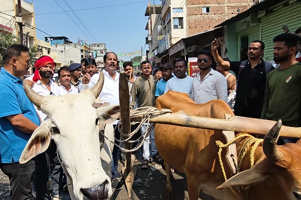 हजारीबाग में सड़कों की बदहाली के विरोध में हल-बैल लेकर सड़क पर उतरे विधायक