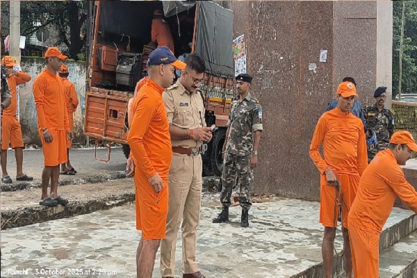 एनडीआरएफ ग्रामीण एसपी प्रवीण पुष्कर जवानों तालाबों दुर्गा प्रतिमा धुर्वा डैम पूजा पंडालों बड़ा तालाब मूर्ति मूर्ति विसर्जन राजधानी रातू तालाब लाइन टैंक तालाब विसर्जन सुरक्षा