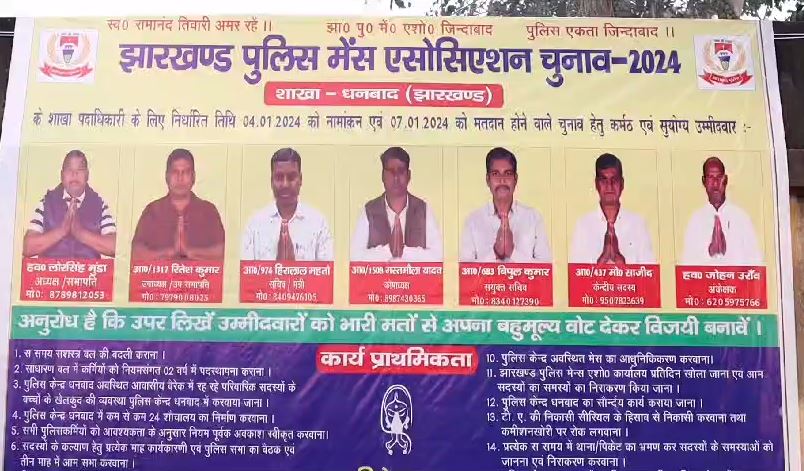 धनबाद : झारखंड पुलिस मेंस संगठन धनबाद शाखा के चुनाव की प्रक्रिया शुरू हो चुकी है. गुरुवार को सभी प्रत्याशी अपना नामांकन केंद्र पदाधिकारी सह चुनाव पदाधिकारी के सामने नामांकन भरते नजर आए. नामांकन वापसी की तिथि 5 जनवरी है 7 जनवरी को मतदान एवं मतगणना होगी. ऐसे में प्रत्याशियों के लिए समय कम बचा है. सभी वोटरों को लुभाने के लिए पूरा प्रयास कर रहे हैं. पिछली बार चुनाव विजेता प्रत्याशी भी मैदान में उतर गए हैं और अपनी-टाई सीट फिर से बचाने के लिए मेहनत कर रहे हैं.