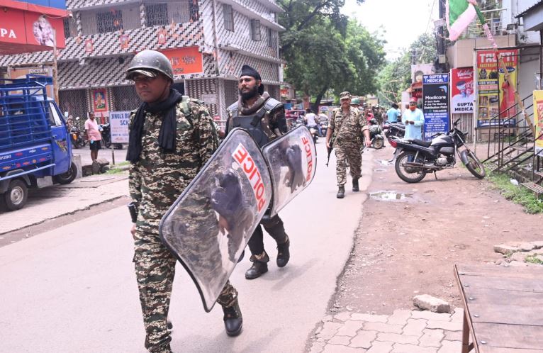 जमशेदपुर: मुहर्रम को लेकर जिला पुलिस पूरी तरह से सतर्क और सजग है. असामाजिक तत्वों से निपटने के लिए भी पुलिस ने इंतजाम कर रखे है. इसे लेकर जिला पुलिस द्वारा मंगलवार को मॉक ड्रिल के बाद पूरे जिले में फ्लैग मार्च किया. इस दौरान एसएसपी किशोर कौशल ने खुद फ्लैग मार्च की कमान संभाली. एसएसपी के साथ ग्रामीण एसपी सह प्रभारी सिटी एसपी ऋषभ गर्ग, डीएसपी मुख्यालय-2 निरंजन तिवारी, क्षेत्र के थाना प्रभारी समेत सीआरपीएफ और अर्ध सैनिक बल मौजूद रहे. फ्लैग मार्च कदमा शास्त्रीनगर से होते हुए बिष्टुपुर के धातकीडीह, साकची मोहम्मडन लाईन, परसुडीह के मकदमपुर और जुगसलाई समेत पूरे शहर में किया गया. इस दौरान एसएसपी ने सुरक्षा तैयारियों का जायजा भी लिया.