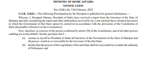 Johar Live : मणिपुर में केंद्र सरकार ने गुरुवार को राष्ट्रपति शासन लगा दिया है। 9 फरवरी को मुख्यमंत्री एन बीरेन सिंह ने अपना इस्तीफा गवर्नर को सौंप दिया था। राज्य में 21 महीने (3 मई 2023) से जारी जातीय हिंसा के चलते 300 से ज्यादा मौतें हो चुकी हैं। इसी के चलते बीरेन सिंह पर इस्तीफे का काफी दबाव था। विपक्षी पार्टियां भी लगातार NDA से इस मुद्दे पर सवाल पूछ रही थी।
