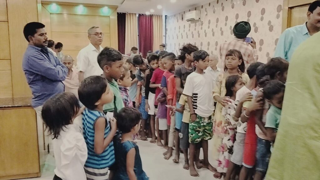महा चतुर्थी के पावन मौके पर इसकी शुरुआत जमशेदपुर दुर्गा पूजा केंद्रीय समिति ने की है, इनके द्वारा पहले चरण में तक़रीबन 300 बच्चों कों नये वस्त्र प्रदान किये गए. इस दौरान बच्चों के चेहरे पर खुशी नजर आई.