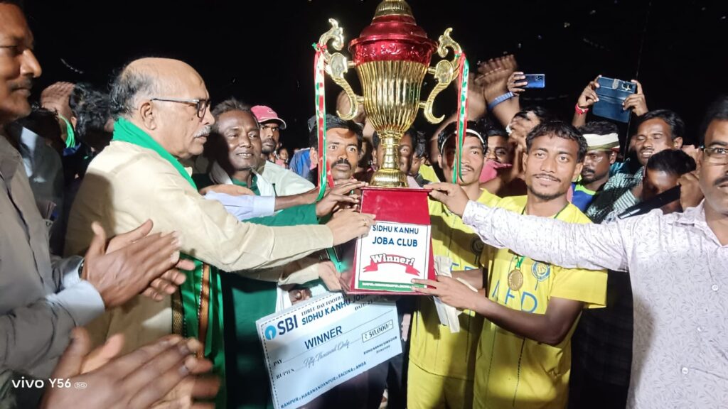 अंबा रामपुर गांव में सिद्धू कानू तीन दिवसीय फुटबाल टूर्नामेंट में पुरुष के 16 टीम भाग लिया। जहां फाइनल खेल में उप विजेता बाबु एफसी ,विजेता हांसदा एफसी टीम को कप तथा नगद 50,000 तथा 40,000 हजार तथा सेमिफाइनल दोनों टीम राय ब्रदर्स एंव
