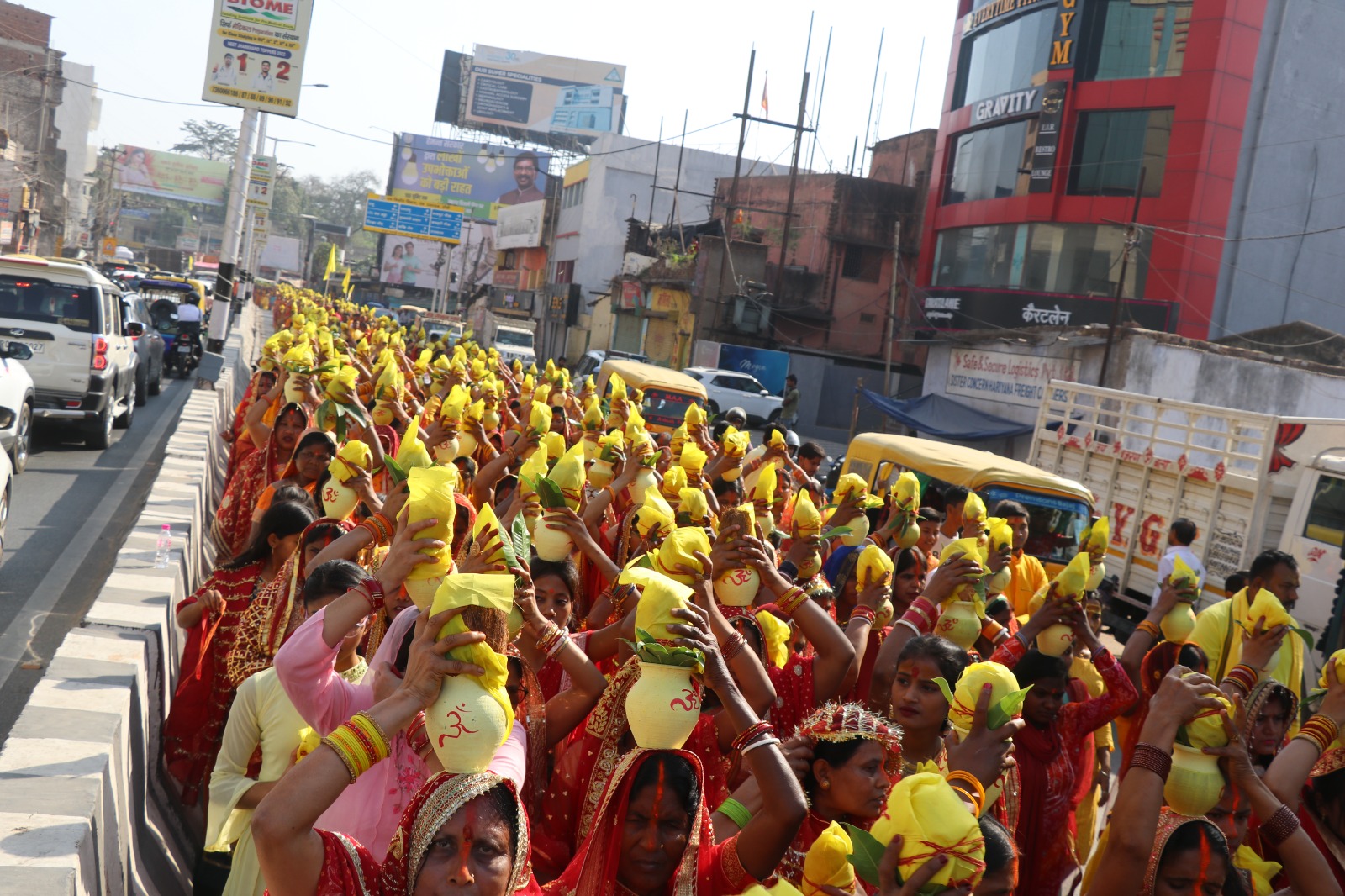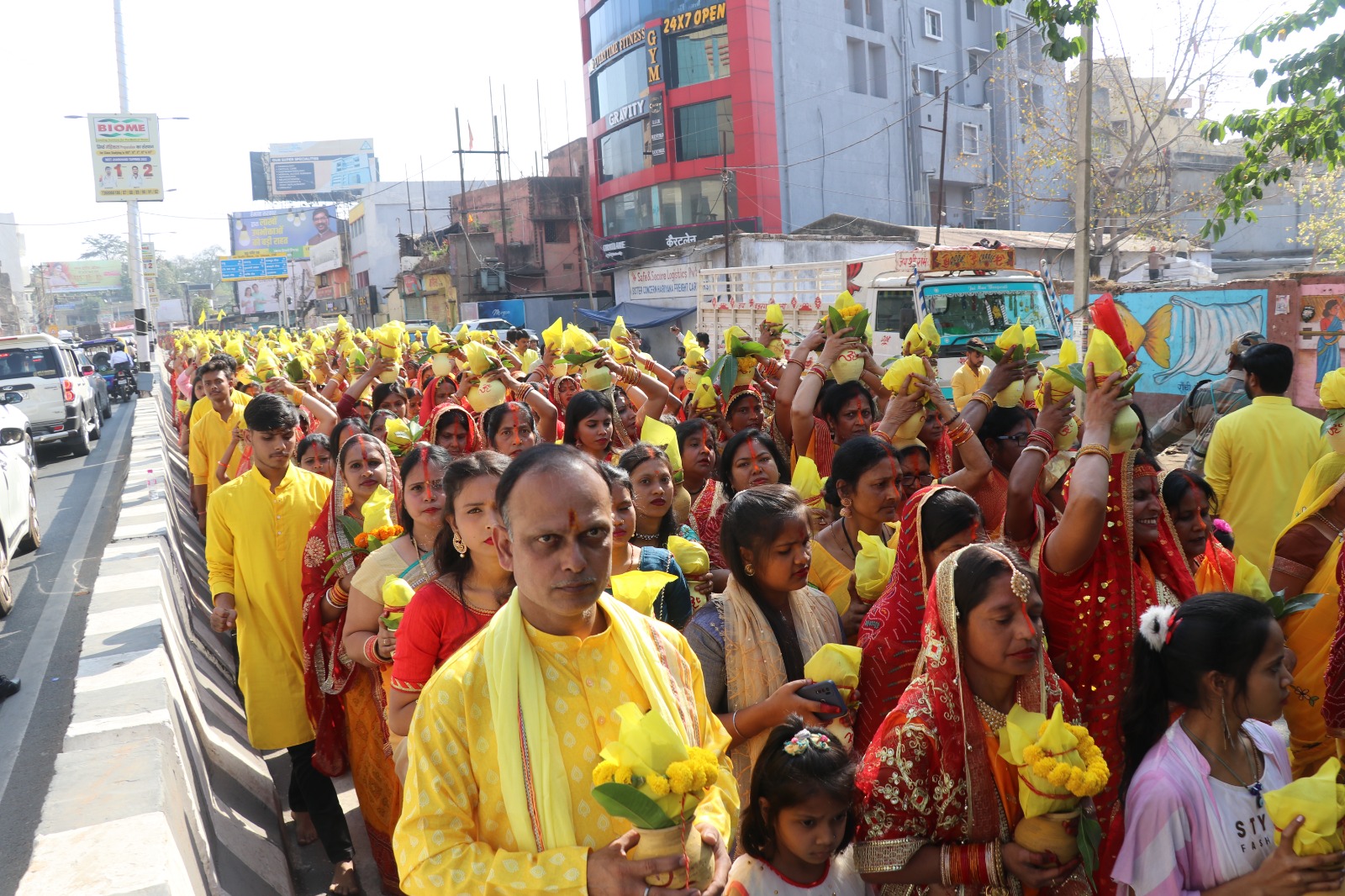 रांची : मां बगलामुखी का 7वां वार्षिक महोत्सव गुरुवार को कलश यात्रा के साथ प्रारंभ हो गई। कलश यात्रा सुबह सात बजे निकाली गई, जिसमें 1100 महिलाओं ने भाग लिया। कलश यात्रा बगलामुखी मंदिर किशोर गंज से निकल कर पहाड़ी मंदिर पहुंच, जहां महिलाओं ने कलश में जल भरी और फिर दुर्गा मंदिर रातू रोड से हरमू रोड होते हुए पुन: बगलामुखी मंदिर पहुंची।
