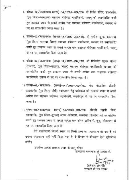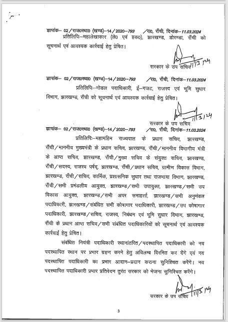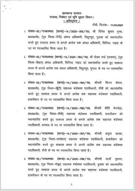 11 अंचल अधिकारी और सहायक बंदोबस्त पदाधिकारी का तबादला-पदस्थापन, देखें लिस्ट