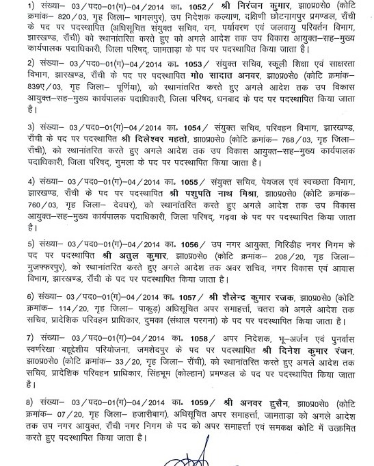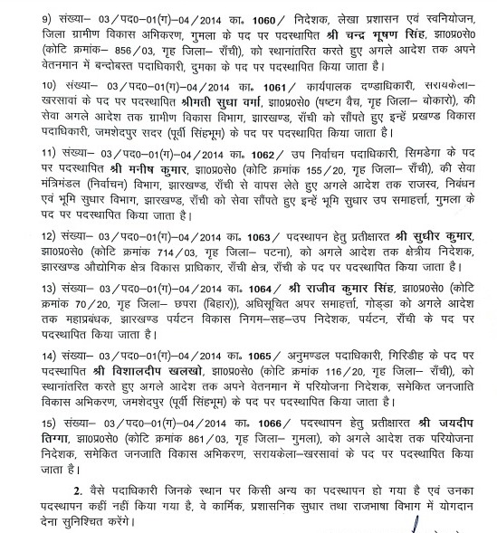 Transfer of two officials of Jharkhand Administrative Service, transfer of one officer postponed