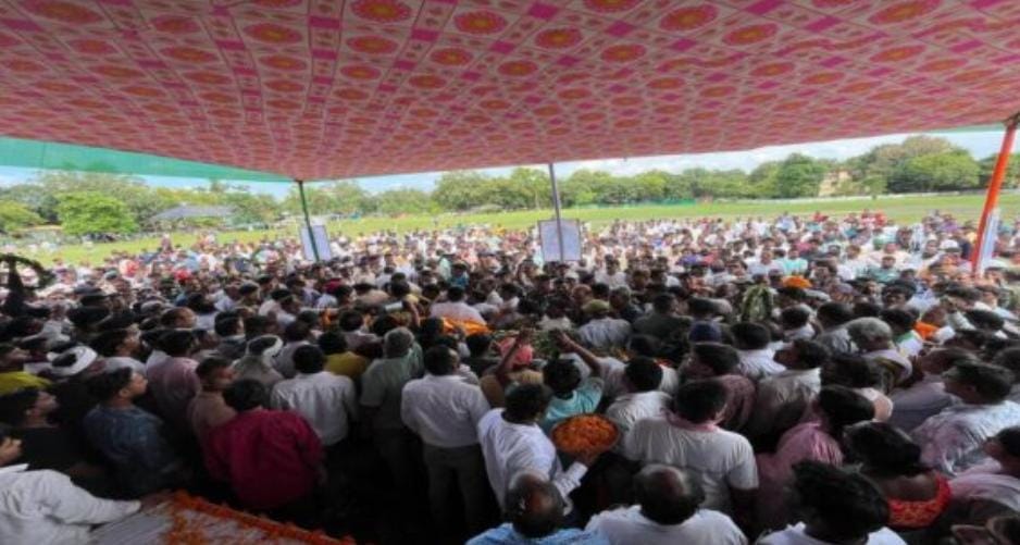 Jamshedpur: झारखंड के शिक्षा मंत्री और घाटशिला विधायक रामदास सोरेन के निधन के बाद शनिवार को उनका पार्थिव शरीर घाटशिला लाया गया। जैसे ही उनका शव घाटशिला पहुंचा, पूरे क्षेत्र में शोक की लहर दौड़ गई और लोगों की आंखें नम हो गईं। एचसीएल मैदान में अंतिम दर्शन के लिए रखा गया पार्थिव शरीर देखने हजारों की भीड़ उमड़ी। समर्थकों और स्थानीय लोगों ने पुष्प अर्पित कर उन्हें अंतिम विदाई दी।
