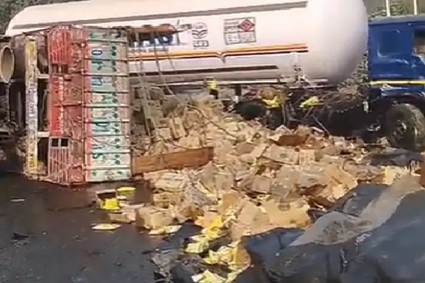 Koderma : कोडरमा थाना क्षेत्र के रांची–पटना मुख्य मार्ग पर स्थित कोडरमा घाटी के नौवां माइल में शनिवार को एक बड़ा हादसा हो गया। रिफाइन से भरा एक ट्रक गैस टैंकर को बचाने के दौरान अनियंत्रित होकर पलट गया। हादसे में ट्रक के सभी रिफाइन कार्टून सड़क पर फैल गए, जबकि गैस टैंकर सड़क किनारे फंस गया। सौभाग्य से दोनों वाहनों के चालक और उपचालक सुरक्षित रहे। घटना के बाद मौके पर भारी संख्या में स्थानीय लोग जुट गए। लोग अपने घरों से बर्तन, बोरा और झोले लेकर पहुंचे और सड़क पर बिखरे रिफाइन के पैकेट उठाकर ले जाने लगे। ट्रक चालक ने रोकने की कोशिश की, लेकिन भीड़ नहीं मानी और कुछ ही देर में आधे से ज्यादा कार्टून गायब हो गए।