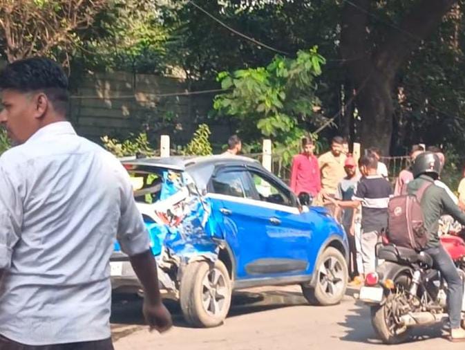 Bus Accident car collision jamshedpur Jugsalai Passenger Bus Road Accident Tata Pigment Gate Traffic Jam traffic update vehicle damage