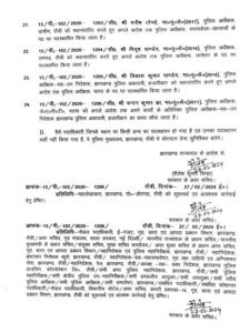रांची: राज्य में पदस्थापित आईपीएस स्तर के 24 अधिकारियों का तबादला किया गया है. गृह विभाग ने मंगलवार को इससे संबंधित अधिसूचना जारी कर दी है.