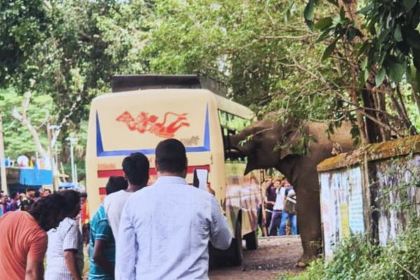 जंगली हाथी ने मचाया हड़कंप, बस और घरों को किया क्षतिग्रस्त